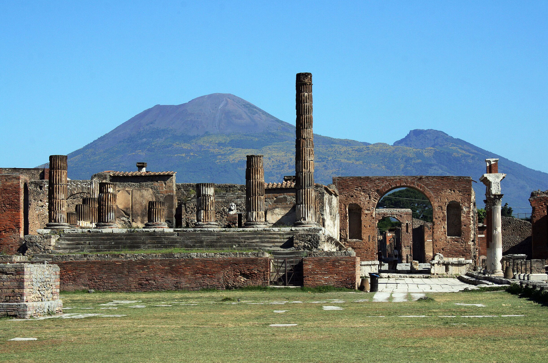 Visite de l’ancienne cité romaine qui fut entièrement ensevelie lors de la terrible éruption du Vésuve en 79 après J.-C. et qu’un linceul de cendres a conservée intacte. La ville de Pompéi a été ensevelie